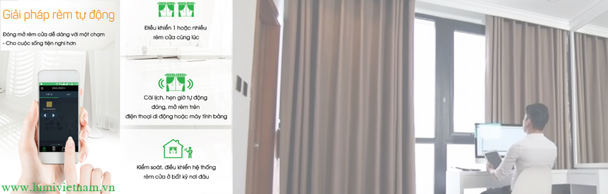 Ngoài điều khiển rèm, cổng cửa trực tiếp bằng remote, bằng tay trên công tắc, giải pháp nhà thông minh Lumi, cho phép bạn điều khiển hệ thống rèm, cổng cửa từ xa trên điện thoại. Ngoài ra, còn điều khiển theo các ngữ cảnh đã được lập trình sẵn như: tiếp khách, xem phim, đi ngủ… Đặc biệt có thể điều khiển riêng từng rèm hoặc bạn có thể điều khiển được nhiều rèm cùng 1 lúc.