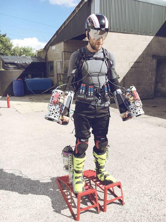Mới đây, một nhà phát minh người Anh đã chế tạo thành công bộ đồ có sáu động cơ phản lực nhỏ, giúp người mặc có thể bay trên không với vận tốc lên đến 450 km/giờ.