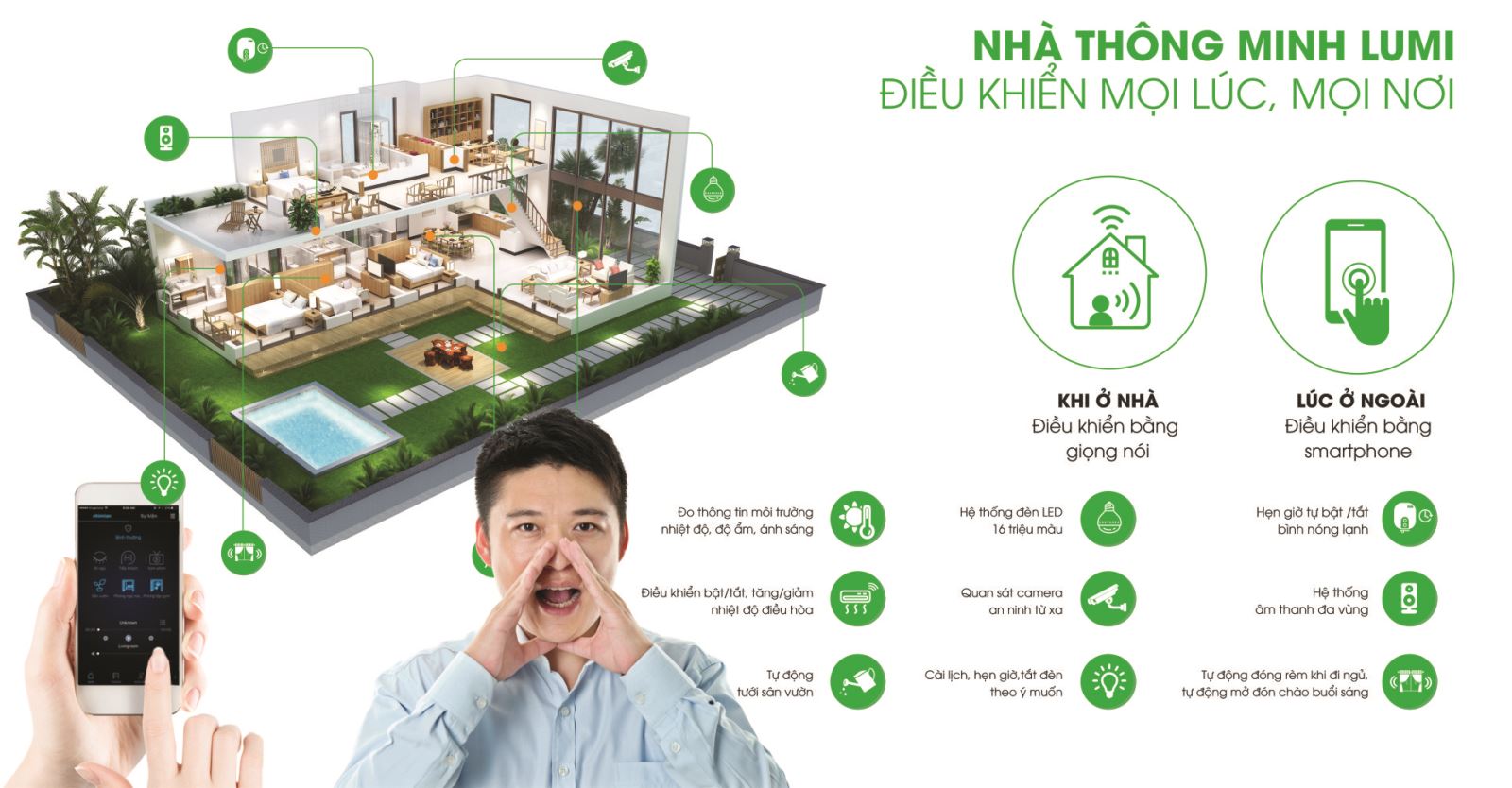 Bạn sẽ được trải nghiệm một không gian tiện nghi trong mơ trong chính ngôi nhà của mình với hệ thống chiếu sáng thông minh, âm thanh đa vùng, an ninh an toàn,... tất cả đều có thể tự động theo ý muốn của chủ nhân ngôi nhà. Đặc biệt hơn, đó chính là chi phí hoàn toàn "hợp túi tiền" mà ai cũng có thể sở hữu. Chi phí nhỏ mà đem lại lợi ích vô cùng lớn và thiết thực cho cuộc sống gia đình bạn.