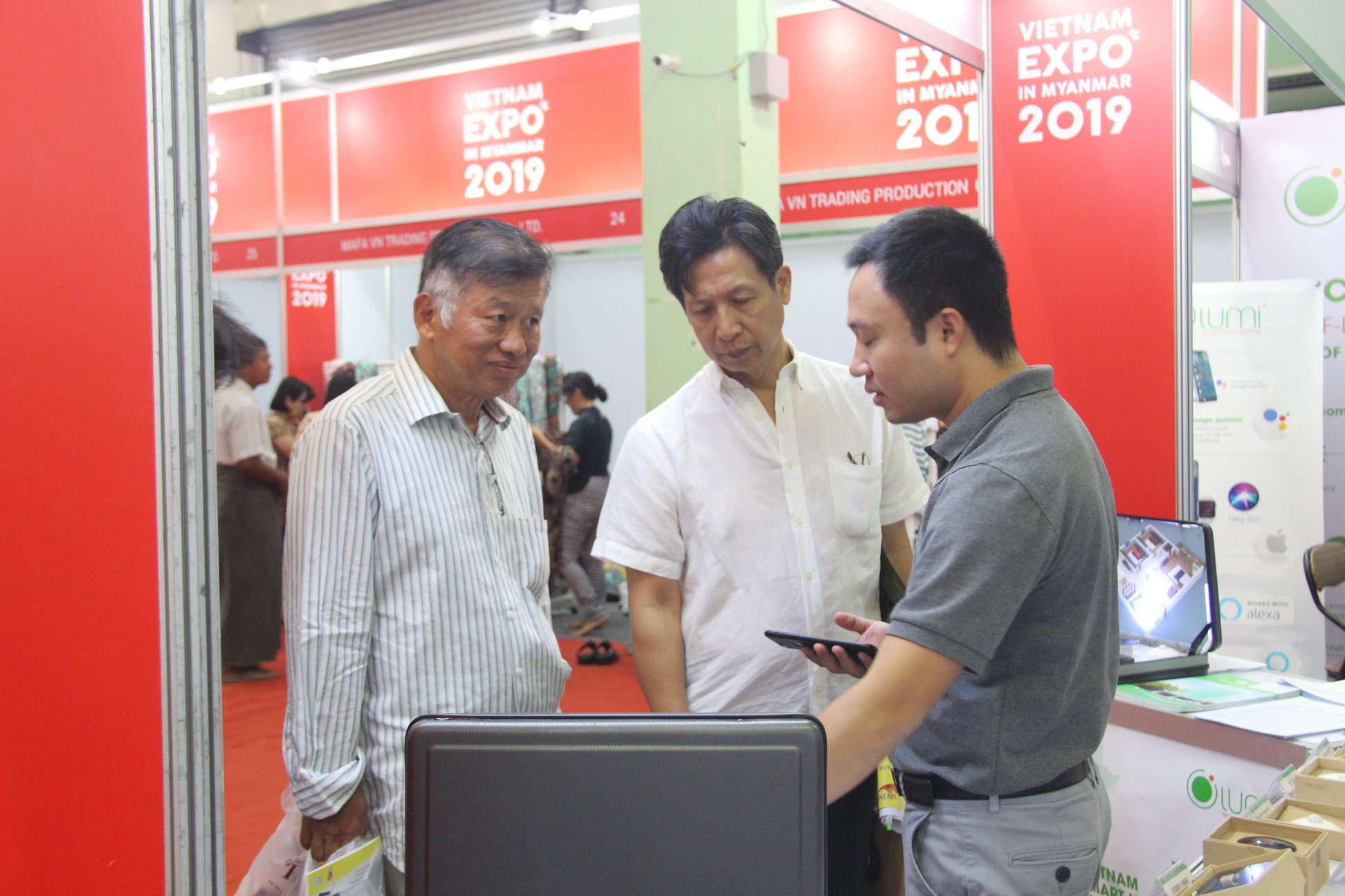 Từ ngày 18/12/2019 đến 22/12/2019, Lumi Việt Nam đã tham gia hội chợ triển lãm hàng Việt Nam tại Myanmar - VIETNAM EXPO 2019. Với 3 gian hàng trưng bày giải pháp thông minh dành cho ngôi nhà, Lumi Việt Nam đã thu hút sự chú ý của rất nhiều khách hàng và doanh nghiệp Myanmar.